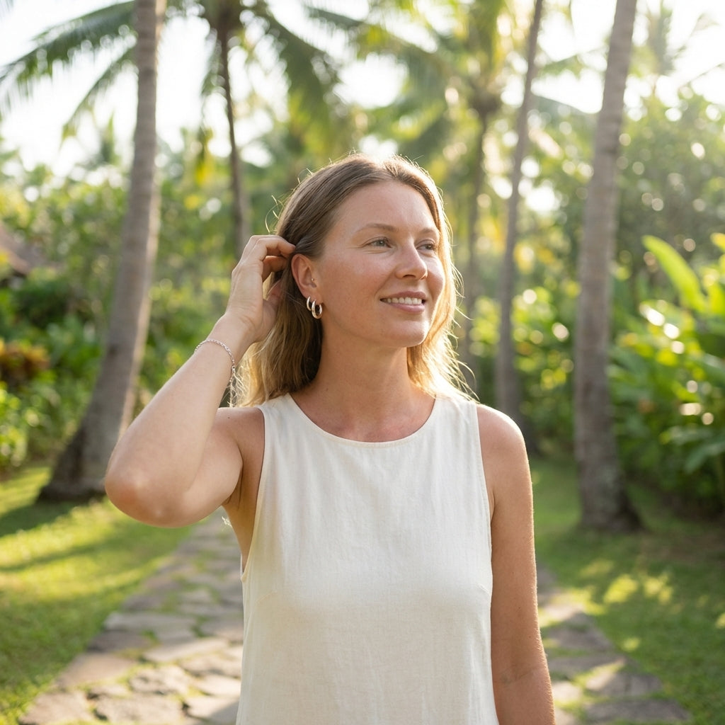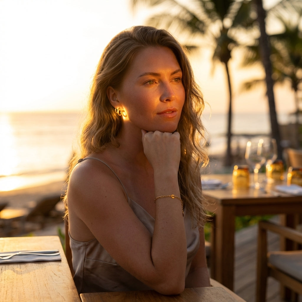 Fully waterproof, sweatproof and hypoallergenic, the Elara Twist Hoops are designed to stay on from morning workouts to ocean swims without losing their glow.